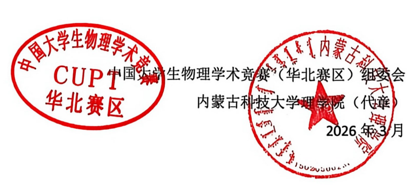 中国大学生物理学术竞赛(China Undergraduate Physics Tournament,简称CUPT)是一项旨在提升本科生解决复杂科学问题能力、培养研究性学习思维及团队协作精神的高水平赛事。2026年CUPT华北赛区竞赛由内蒙古科技大学创新创业教育学院与理学院共同承办。第一轮通知已于2026年1月发出,竞赛分为团体赛和作品赛,现将竞赛细节条款通知如下: